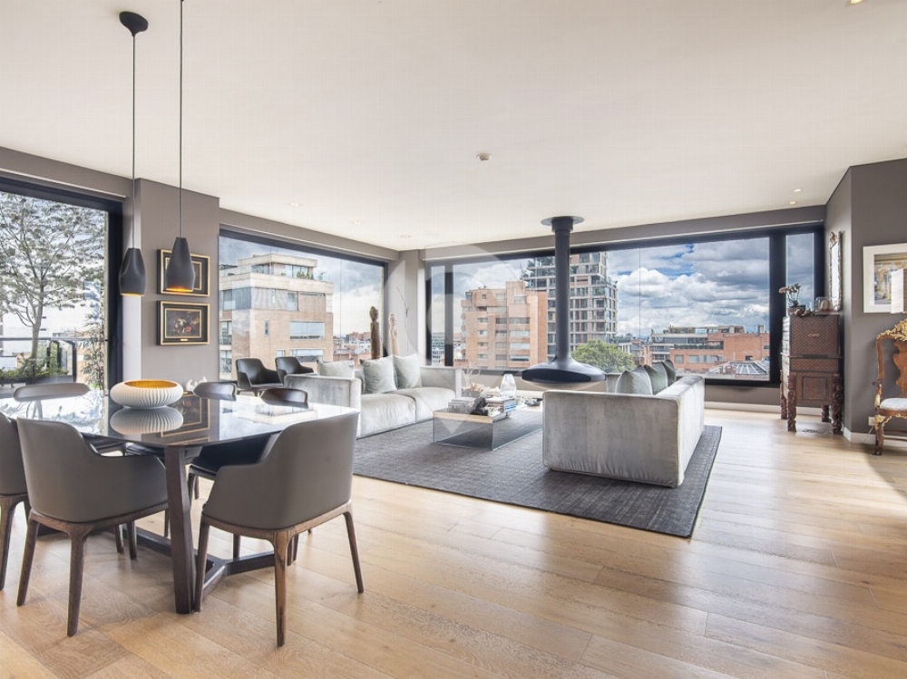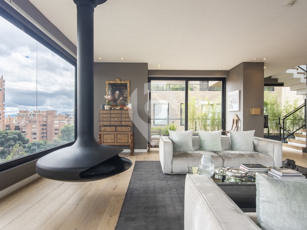 Exclusivo penthouse tríplex ubicado en el prestigioso barrio La Cabrera, con una imponente vista al horizonte de Bogotá. La propiedad cuenta con una altura libre de 3 metros de piso a techo, lo que realza la amplitud y luminosidad en todos sus espacios.